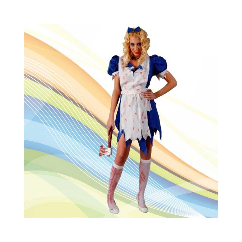 Cuando se trata de asustar nada mejor que la temática gore, fantasmal y de personajes místicos. Si eres de los que no se conforman con pasar desapercibidos, añádele a tu Disfraz de Alicia maligna un buen maquillaje y no olvides que la sangre juega un papel importantísimo en tu caracterización.