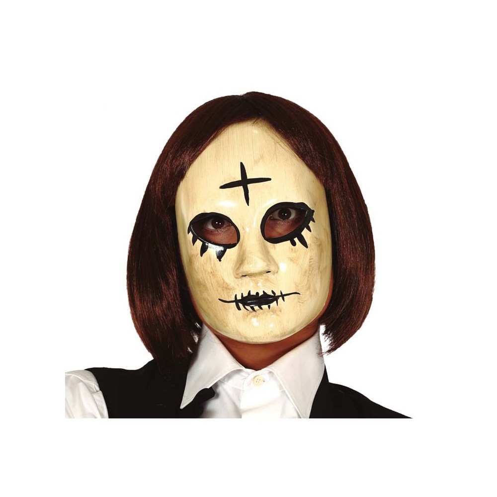 Careta con cruz estigmatizada de mujer. Ideal para personajes de Halloween tipo La purga o payaso killer.