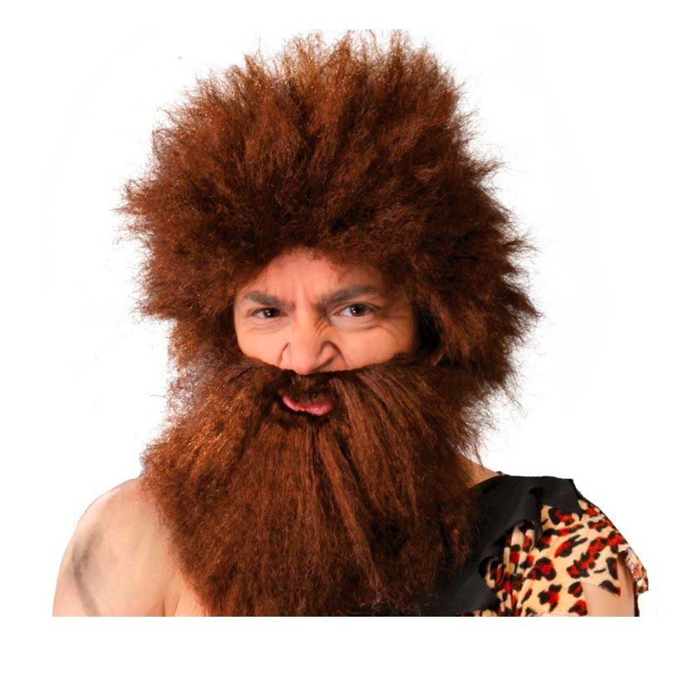 Conjunto de peluca + barba tipo cavernicola. Pelo y barba alocados y despeinados para caracterizarte.